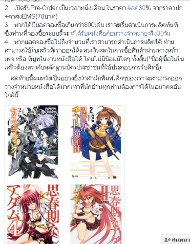 คือสงสัยครับ ถ้า สำนักพิมพ์ ชื้อ ลิขสิทธิ์ มา ลิขสิทธิ์นั้น รวมถึง ขนาดของกระดาษ และคุณภาพกระดาษ ที่ตีพิมพ์ด้วยหรอครับ แบบบางสำนักพิมพ์ได้ ลิขสิทธิ์ไป แต่ใน ลิขสิทธิ์นั้นระบุว่าต้อง ใช้ กระดาษขนาด A3