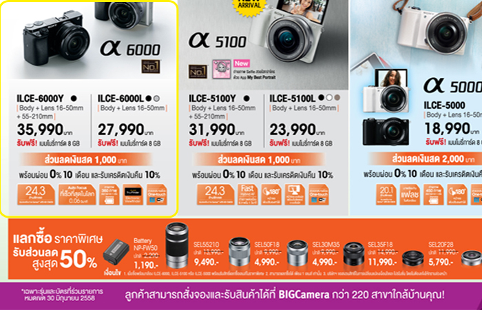 พี่ๆน้าๆคิดว่าลงเอยกับ a6000 คิดถูกที่สุดรึยังคะ ตอนนี้ดูในโบชัวของbig camera แล้วได้ลดอีก1000 คืนเครดิตอีก10% และซื้อแบตเพิ่มในราคาครึ่งนึงอีก