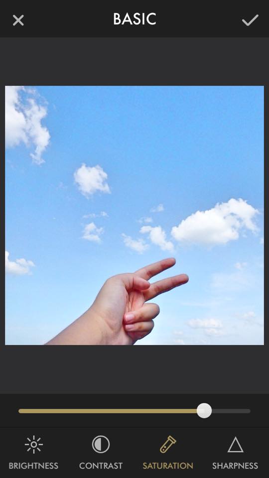 แล้วจะแก้สีโดยกายกดที่คำว่า Basic ตรงแทบเมนูข้างล่างเลยค่ะ แล้วเลือกใช้ Saturation ปรับลดลงให้ภาพไม่สีสดเกินไป แต่อย่าปรับจนภาพสีซีดเกินไปน้าา