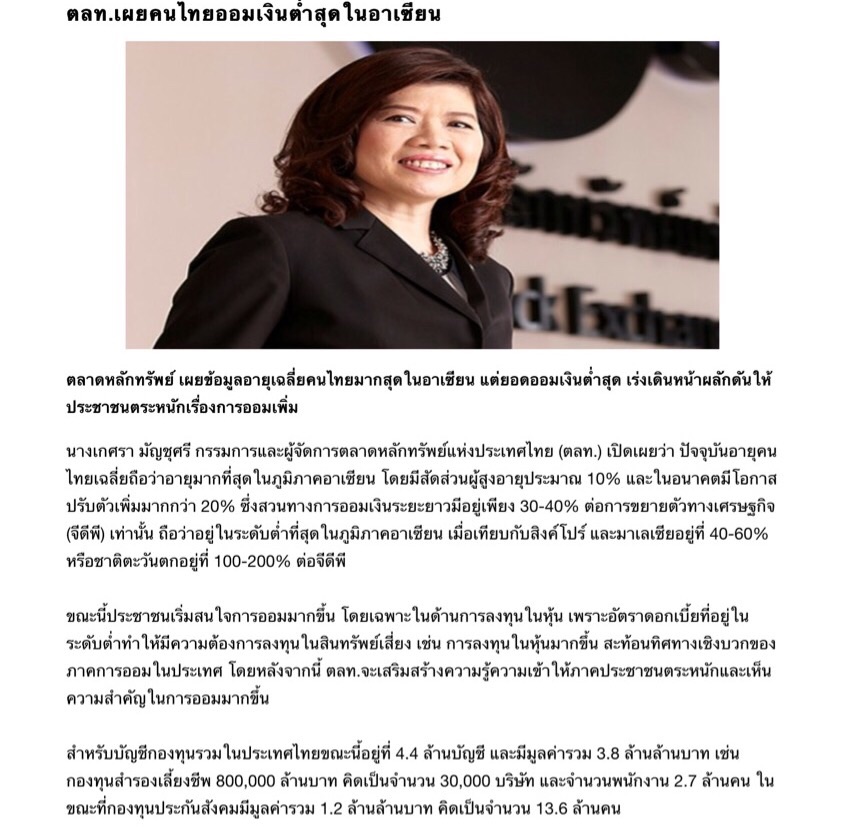 ตลท.เผยคนไทยออมเงินต่ำสุดในอาเซียน