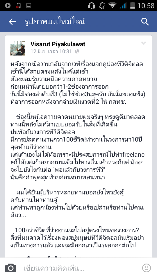 ผมไปเจอบทความนี้จากเพจ "ดิจิตอลทีวีไรฟ่ะ" ซึ่งแชร์ต่อมาจากเฟสบุ๊คของคุณ วิศรุต ปิยะกุลวัฒน์ อุปนายกสมาคมสื่อดิจิตอลเพื่อผู้บริโภค ซึ่งกล่าวถึงผู้บริหารช่องทีวีดิจิตอลท่านนึงได้มาคุยหลังไมค์ว่าประสบปัญหาอย่างมากถึงขั้นปลดพนักงานกว่า 100 คน ซึ่งช่องๆนั้นจะเป็นช่องไหนขอลองเชิญพี่น้องชาวแท็กทีวีดิจิตอลลองทายกันดูนะครับ