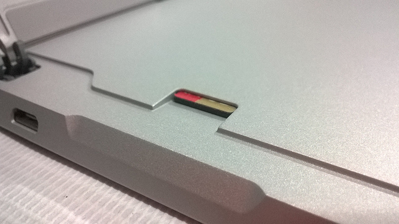 ใต้คิกแสตนด์ มีตัวอ่านการ์ดแบบ microSD รองรับได้สูงสุดถึง 128 GB