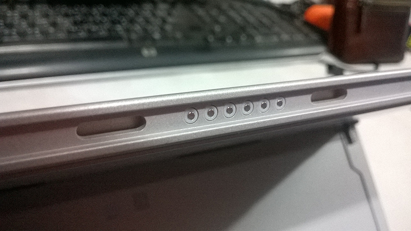 ด้านล่างเป็นพอร์ตฝาปิด สำหรับเชื่อมต่อกับ Type Cover แป้นพิมพ์+ฝาปิดในตัว