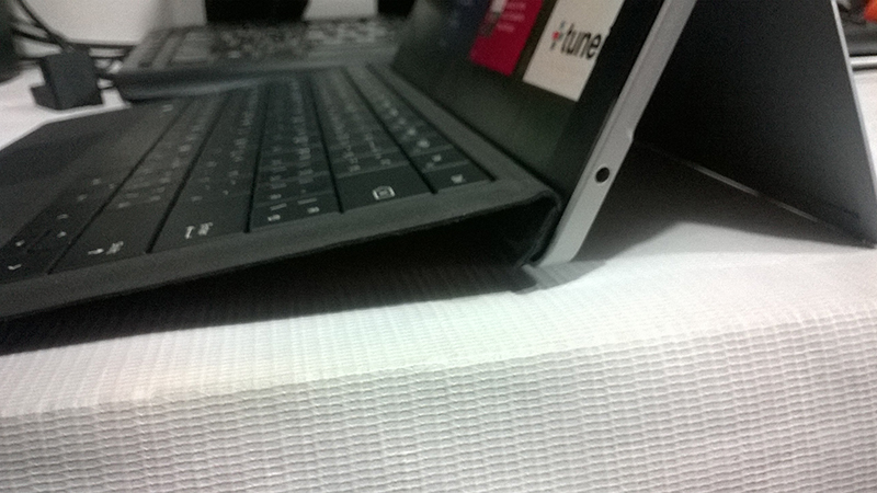 Type Cover ยกขึ้นติดกับด้านล่างของจอได้ เพื่อเพิ่มองศาการพิมพ์ที่ถูกต้อง