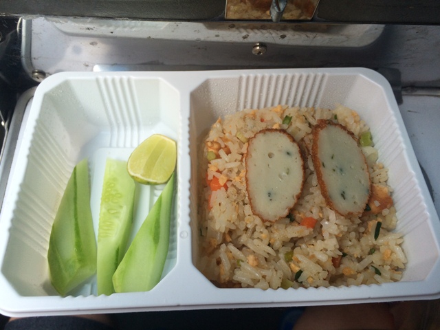 กลับขึ้นรถเดินทางต่อ ก็มีอาหารเที่ยงเป็นข้าวผัดมาเสิร์ฟอีกแว้วว รถชาติก็ใช้ได้เลยครับ