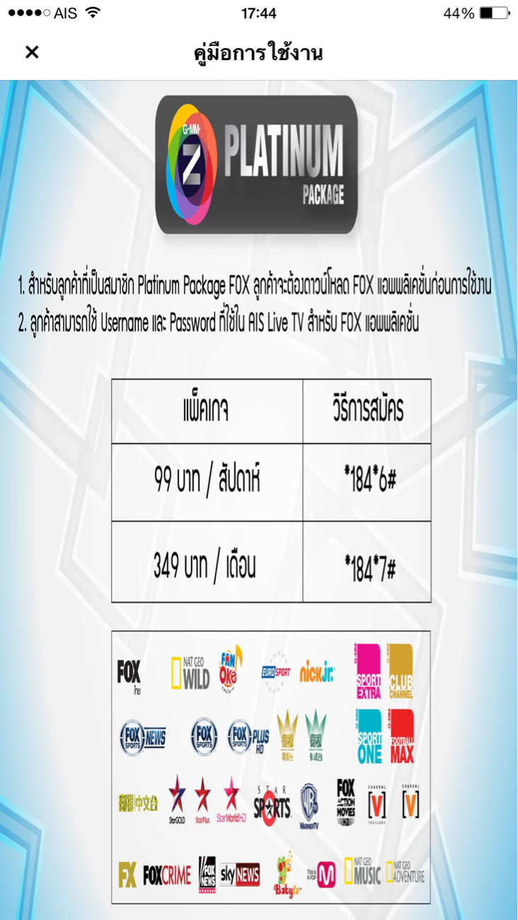 สนใจสมัคร ais tv live แพคเกจ platinum