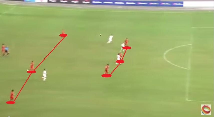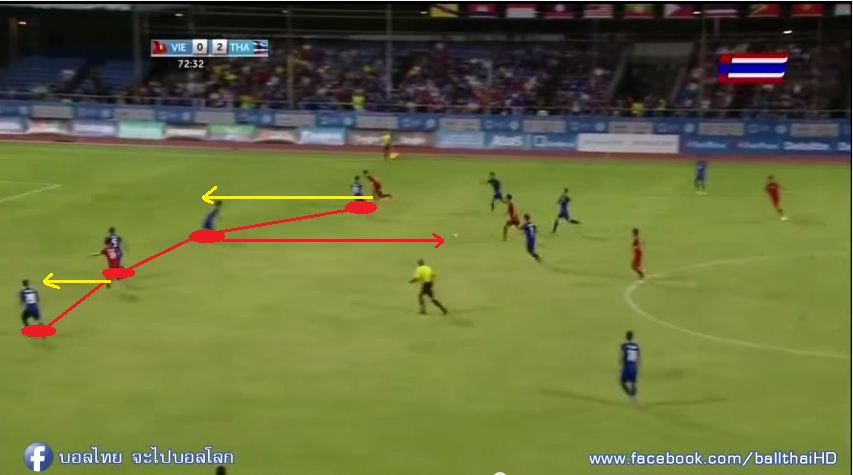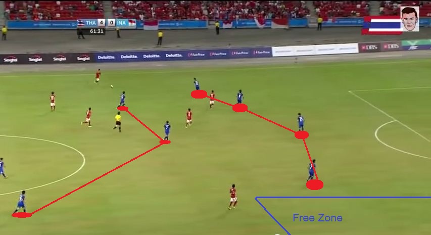 ดูจากการขับเคลื่อน ก็นับว่าโอเคครับ ตามหลักการขับเคลื่อนนักเตะ/การประกบ แต่ฟรีโซนอาจทำให้หลุดได้หากปีกของพม่ามีความเร็วพอควร