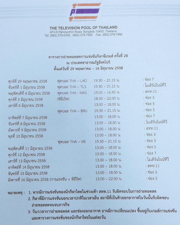 เสียดาย วันนี้น่าจะให้ช่อง 5 กับ nbt เป็นแม่ข่ายถ่ายทอดสดบอลซีเกมส์