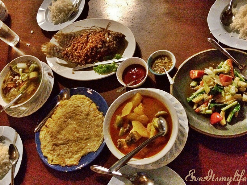 เดินไปยังที่ทานข้าว ทางรีสอร์ทได้จัดเตรียมกับข้าวคอยไว้แล้ว รูปถ่ายอาจไม่สวย คือ หิวกันมาก จนแทบไม่คิดจะถ่าย แต่ต้องขอเก็บภาพไว้สักนิด