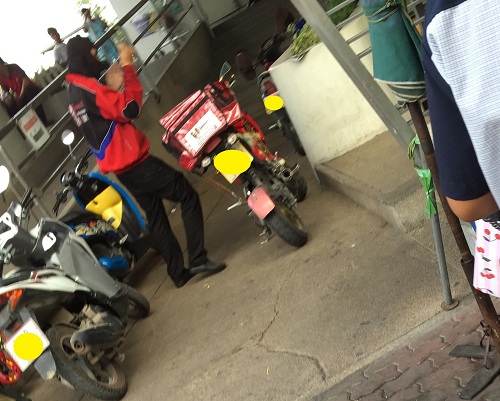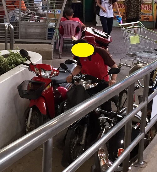 พนักงานส่งไก่ KFC สาขา Big C สะพานใหม่ จอดรถกีดขวางทางคนเดินทั้งที่มีป้ายห้ามจอด (รูปประกอบเพียบ)