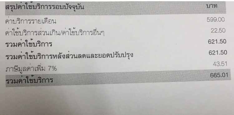 สวัสดีค่ะ เพื่อนๆรบกวนดูให้หน่อยนะคะ คือ เราสมัครใช้บริการtrueแบบเหมาจ่าย599บาท แต่ในบิลกลับมีเรียกเก็บค่าบริการส่วนเกินมา 22.50บาท