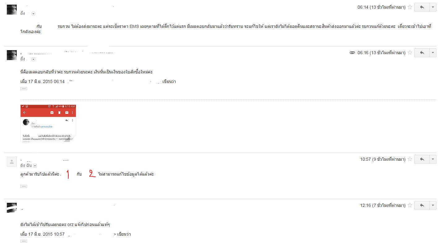 [Spoil] คลิกเพื่อดูข้อความที่ซ่อนไว้เจ้าเก่าคือ Perorder***na ค่ะ เรื่องมีอยู่ว่าเขาเปลี่ยนหน้าเวปใหม่ แล้วเราก็เลือกสินค้าแบบเชคราคาสินค้า EMS (ไม่ได้ส่งนะคะ มันเขียนว่า EMS ตรวจสอบค่าใช้จ่าย) ซึ่ง โอเค อันนั้นอาจจะเป็นช่องสำหรับส่งเลยของเขา มันพีคตรงที่เราได้ส่งเมลไปบอกเขาแล้วว่าออเดอร์นี้เราจะไปรับเองที่โกดัง ขอเงินค่าขนส่งคืน
