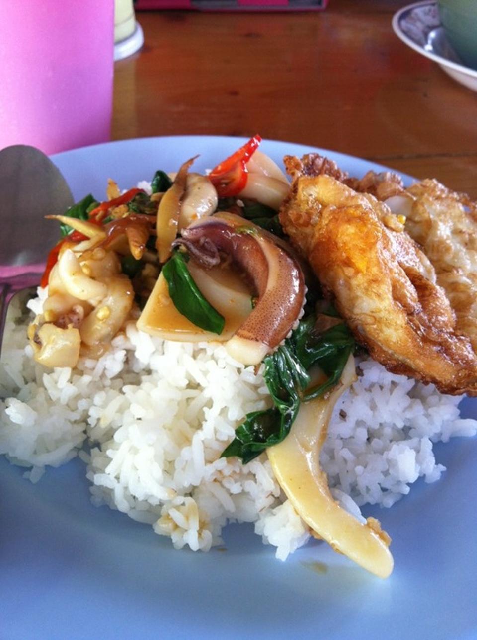 เลยกินข้าวร้านฝั่งตรงข้ามที่พัก ชื่อร้านเจ๊เครือ อาหารตามสั่ง จานละ 50บาท ทะเล60บาทค่ะ อร่อย