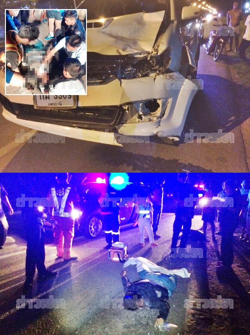 ป้าข้ามถนน รองเท้าหลุดสะดุด สาววัย20 ช็อกขับฟอร์จูนเนอร์ พุ่งชน-ลากร่างเละ!! ถ.อุดรธานี – หนองบัวลำภู