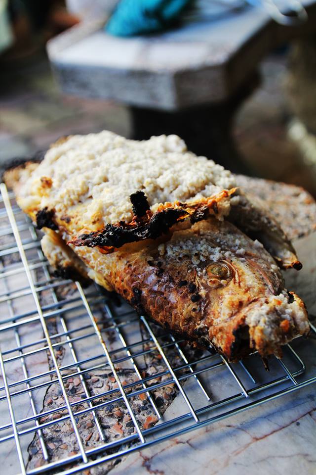 ปลาเผาผมเอาเกลือทารอบตัวยัดเครื่องต้มยำทิ้งไว้เช่นกัน เปิดดูทุกๆ45 นาที นำปลาขึ้นก่อน แกะรับประทานกับน้ำจิ้มซีฟูดอร่อยมากคร้าบ