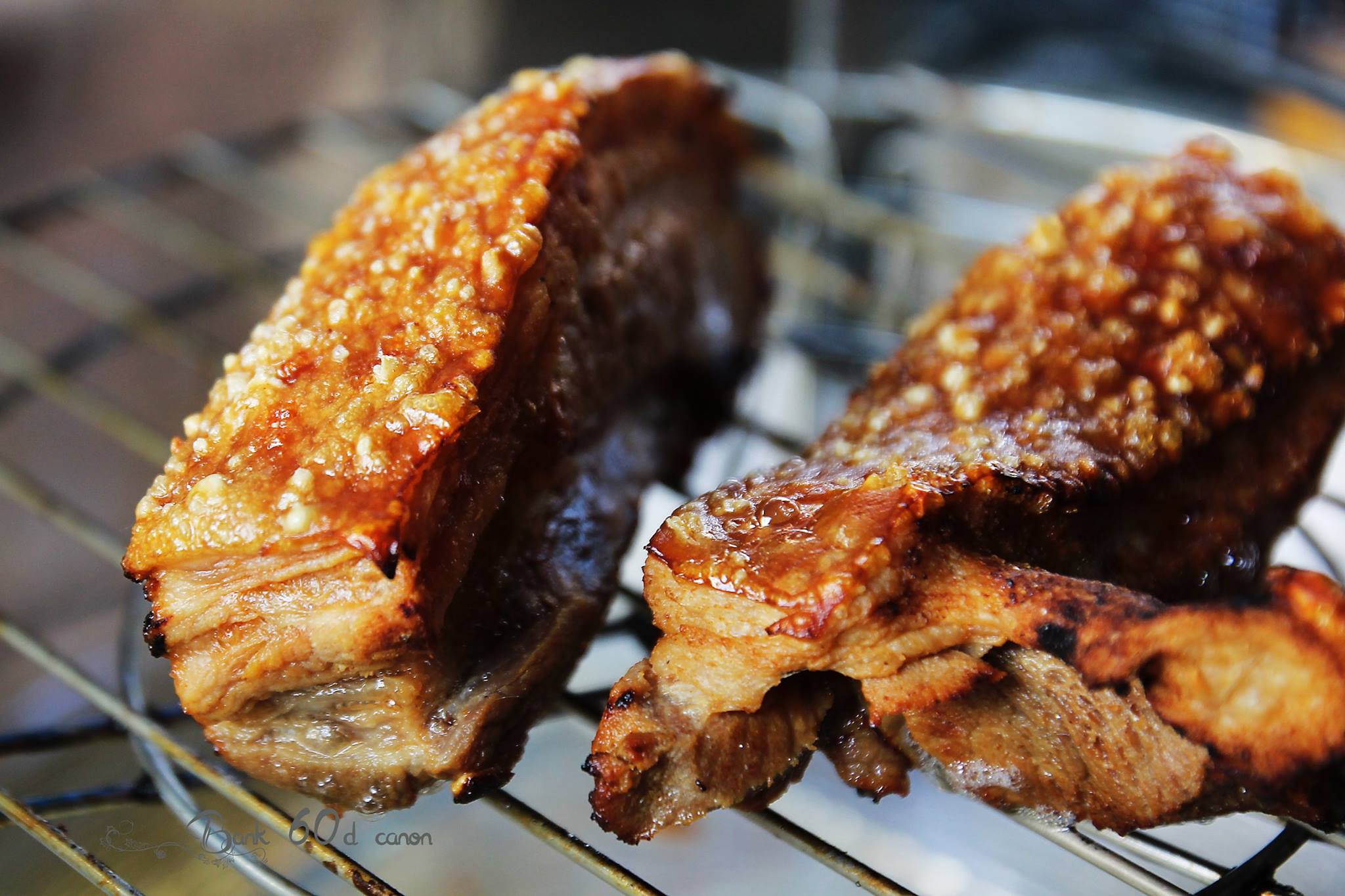 เอาหมูไปต้มให้หนังนิ่ม เข็มแทงงงงงงงงงงง5555 แทงกระหน่ำ พอกเกลือเล็กน้อยผงปรุงรส ตามด้วยน้ำส้มสายชู เอาเข้าเตาอบลมร้อน 100 องศา 40นาที และ 220 องศา 45นาทีออกมาหน้าตาอย่างนี้