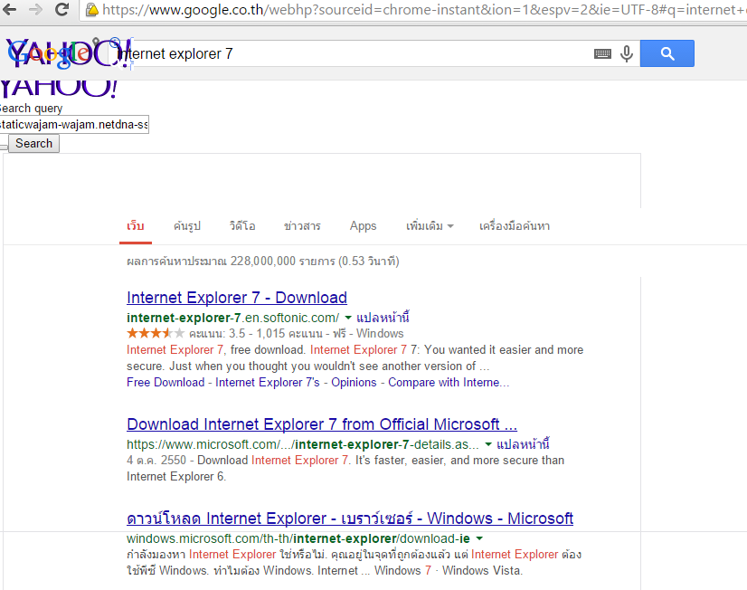 Yahoo โผล่มาเป็นเครื่องมือค้นหาตลอดเลยค่ะ