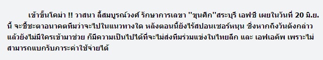 << ถ้า กัลฟ สระบุรี ถอนตัวออกจากไทยลีก จะถูกปรับ หรือ ไม่ครับ >>