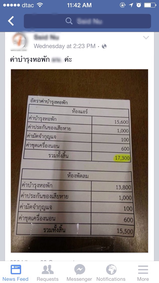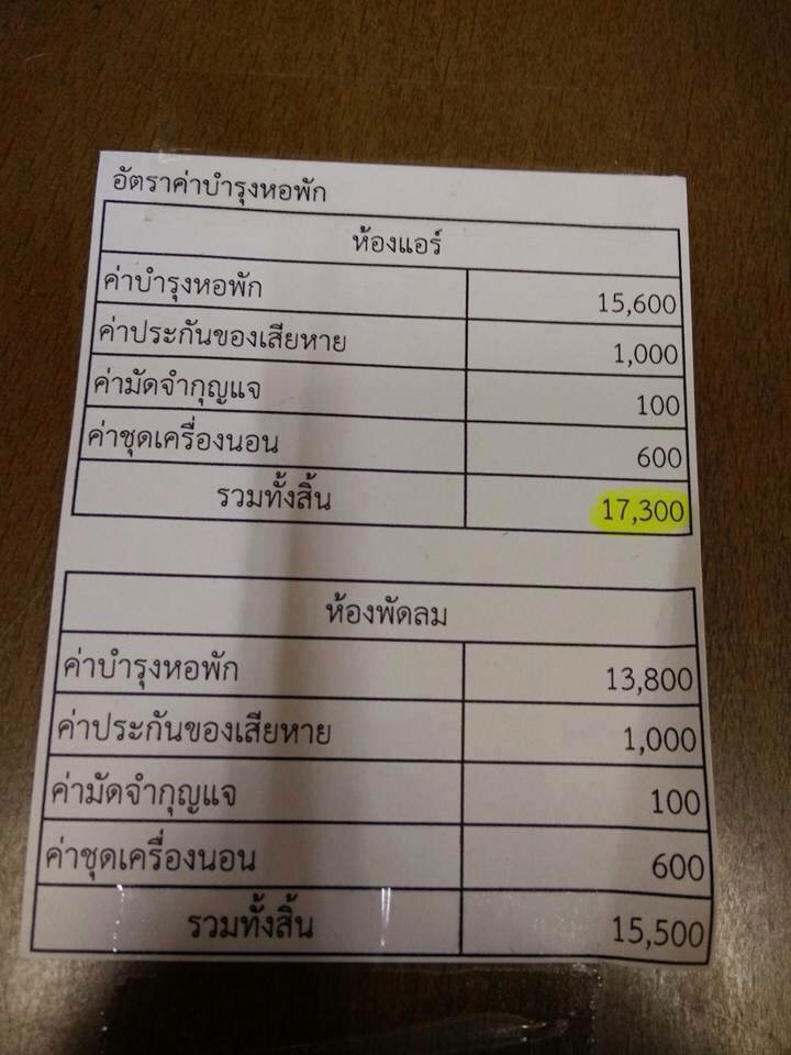 ค่าหอพัก มหาวิทยาลัย สีเขียว(แห่งหนึ่ง)