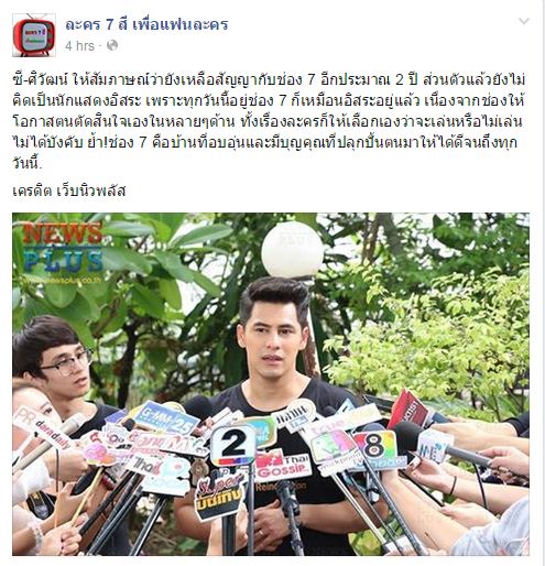 ซี ศิวัฒน์ ยังไม่คิดเป็นนักแสดงอิสระ ช่อง 7 คือบ้านที่อบอุ่นและให้อิสระในการทำงานอยู่แล้ว