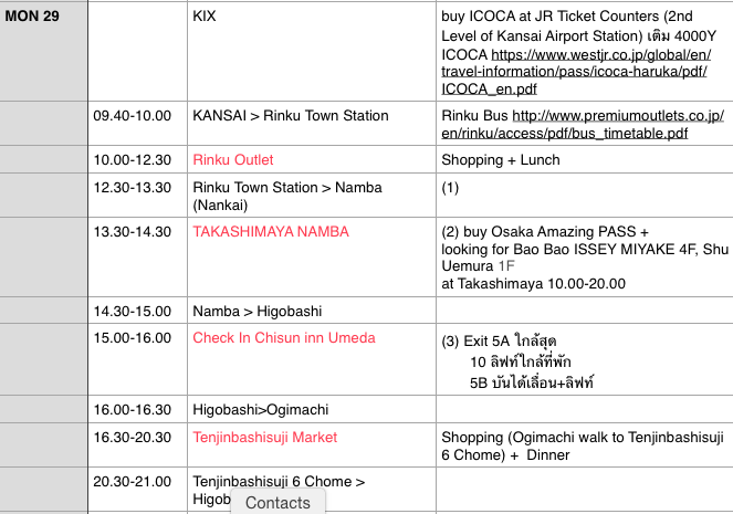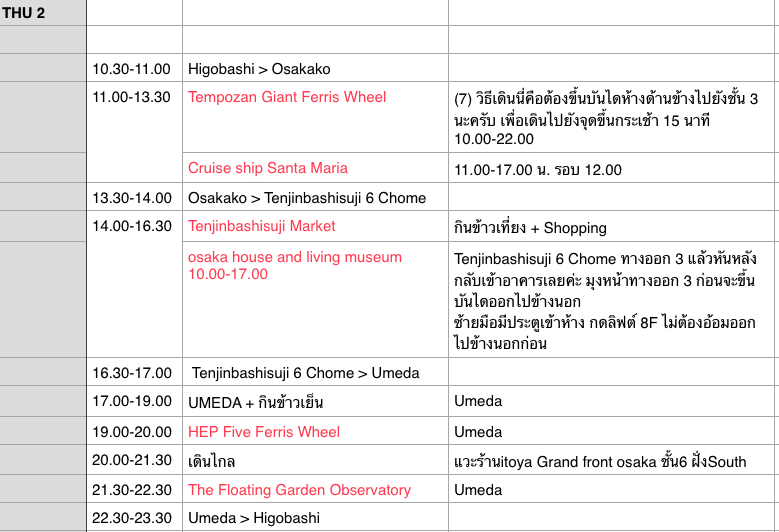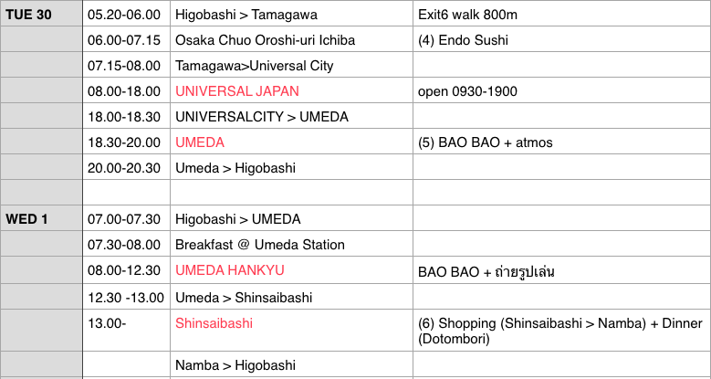 รบกวนกูรูช่วยตรวจแพลนโอซาก้าให้หน่อยค่ะ