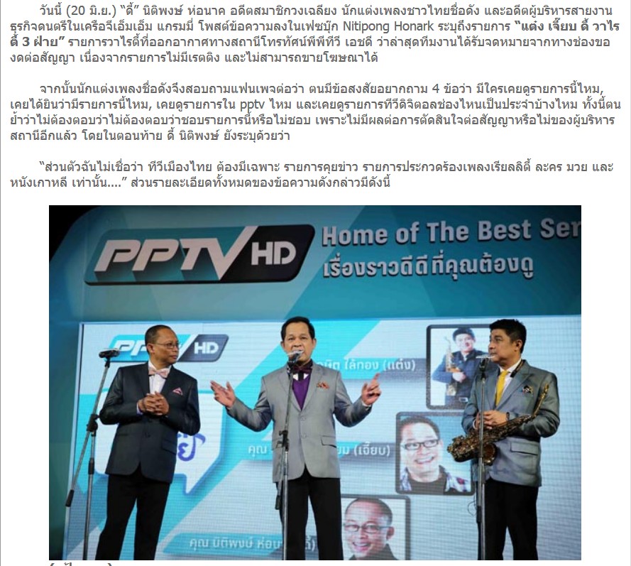 “ดี้ นิติพงษ์” เผยโดน PPTV งดต่อสัญญารายการเหตุไม่มีเรตติง-ไร้โฆษณา โอดทีวียุคนี้มีแต่คุยข่าว-ประกวดร้องเพลง-ละคร-หนังเกาหลี “ดี้ นิติพงษ์