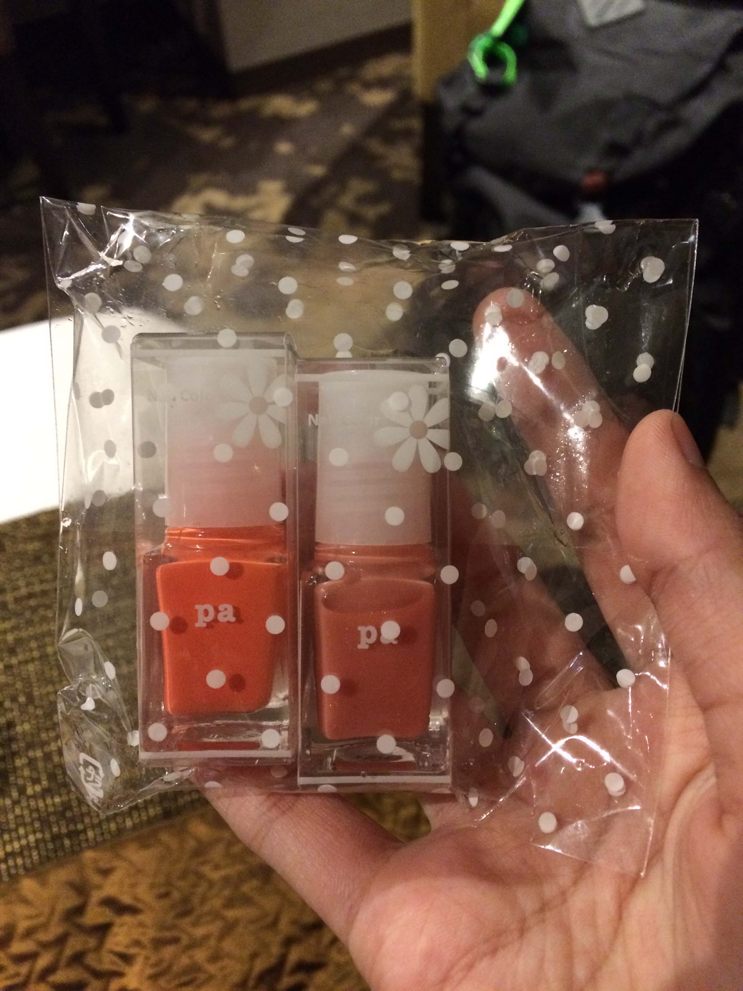 น้ำยาทาเล็บฝากเพื่อนๆ 2 ขวด ขวดล่ะ 200 เยน ประมาณ 55 บาท [ถ่ายจากโทรศัพท์]