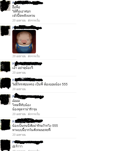 คุยๆ ไปสักพัก ความกวนประสาทเริ่มเลเวลสูงขึ้น เขาจะเรียกพี่ แต่เราอยากเป็นน้อง เลยเรียกตัวเองว่าน้อง 555 (เอางี้นะคะ P = เขา ส่วน K = เรา นะคะ)