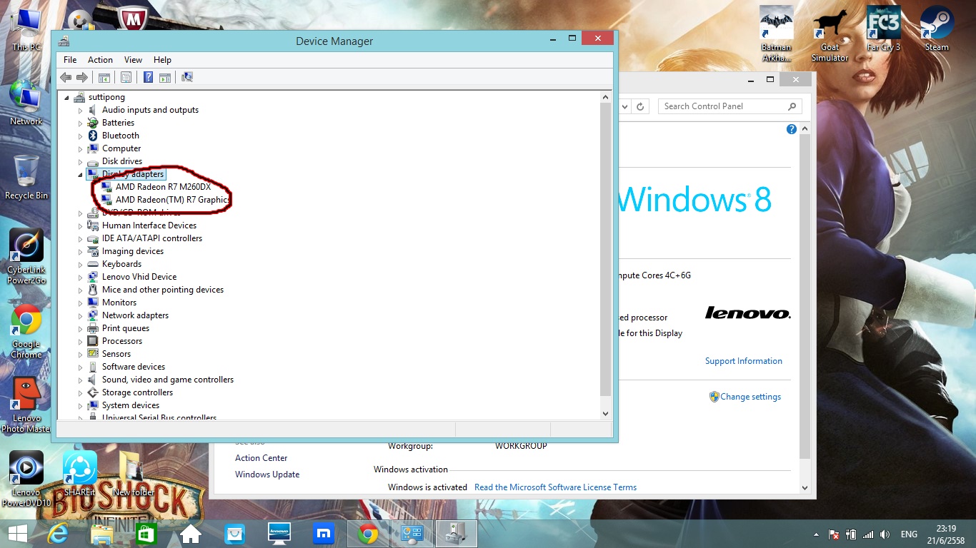 จากภาพ จะเห็นว่า มีการ์ดจอเเยกคือ AMD Raeon R7 m260 dx