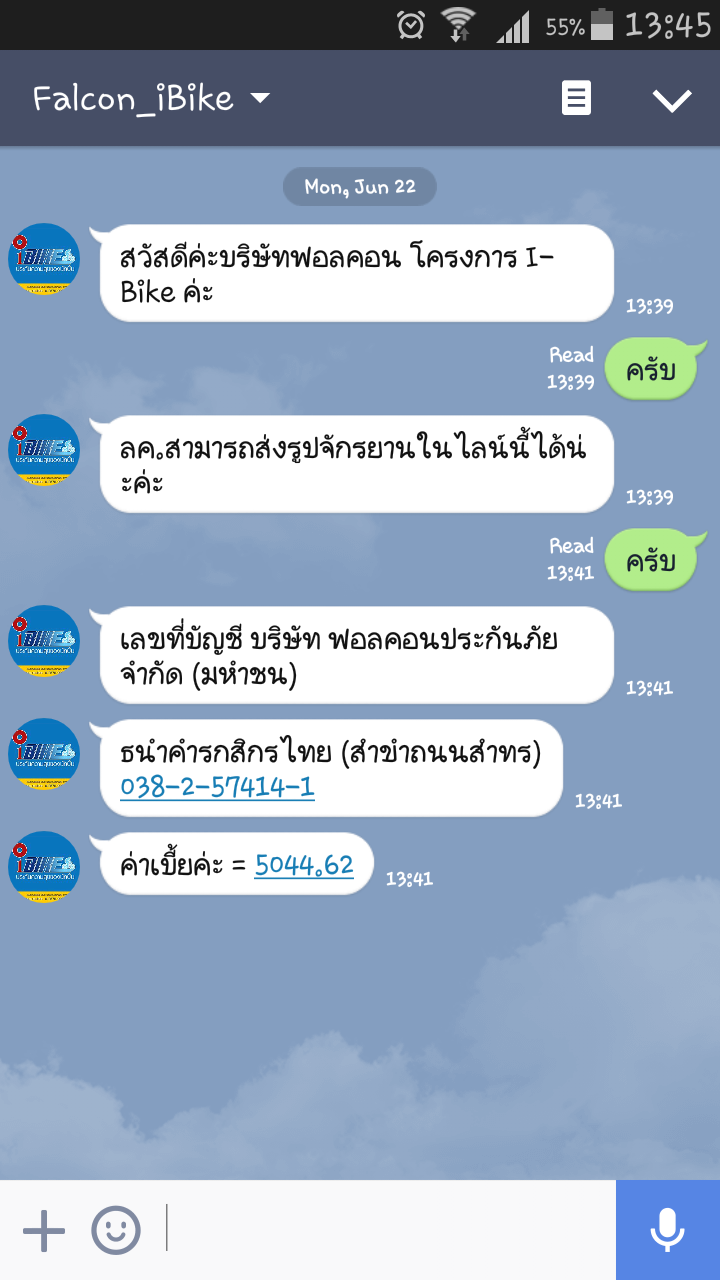 เมื่อผมคุยกับเจ้าหน้าที่ประกัน ibike จาก falcon ผ่าน line