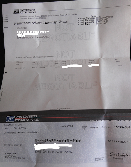 กลับมาอีกที ลืมไปแล้วด้วยซ้ำว่าเคยเสียเงินไปแล้ว 120 เหรียญให้หัวขโมยที่ทำงานในไปรษณีย์ไทย อยู่ๆเมื่อสัปดาห์ที่แล้ว ได้รับจดหมายต่อท้ายด้วยเช็คเป็นจำนวนเงิน $102.12 คืนมาค่ะ!!