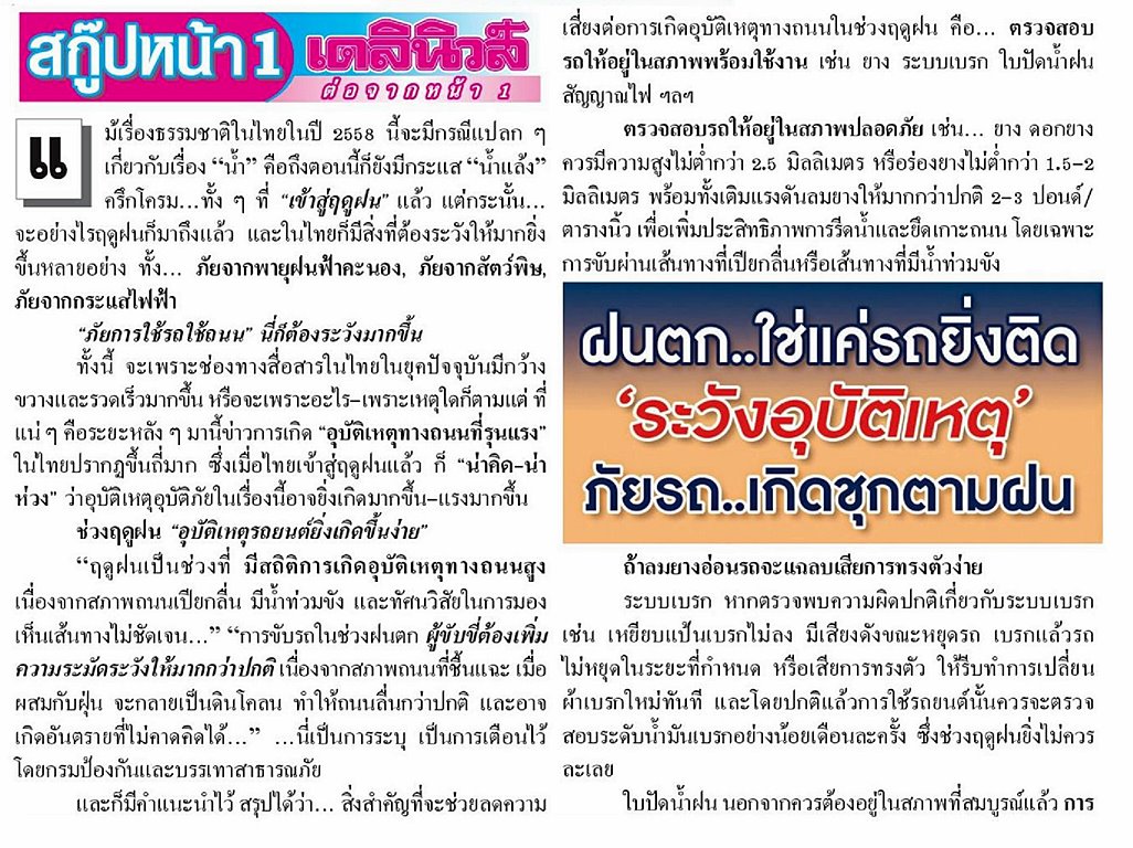 สกู๊ปหน้า 1: ฝนตก..ใช่แค่รถยิ่งติด 'ระวังอุบัติเหตุ' ภัยรถ เกิดชุกตามฝน ประมาทอาจตาย-วินาศสันตะโร!!!.