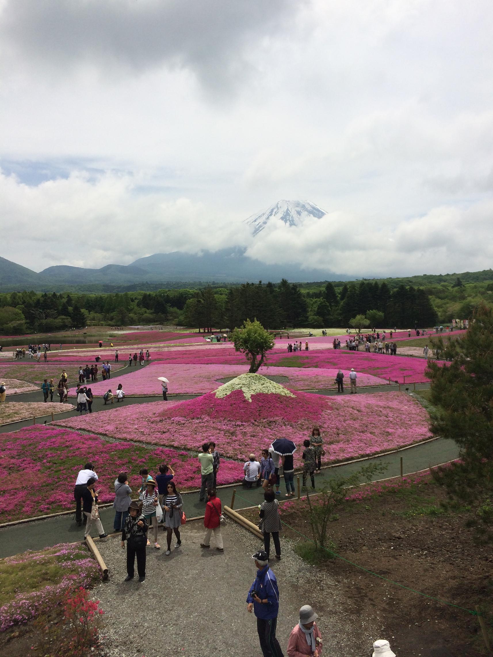 เป้าหมายแรก คือ การไปชมทุ่งดอกพิงค์มอส ในเทศกาล Fuji Shibazakura นั่งรถบัสจากสถานีรถไฟ Kawaguchiko ประมาณชั่วโมงกว่าๆ ก็ถึงสถานที่จัดงาน