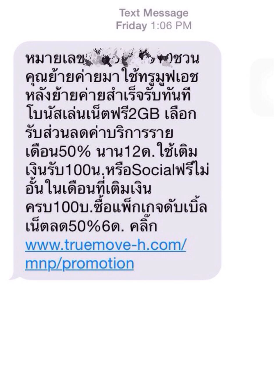 ผมเลยติดต่อเพื่อนว่าได้รับ sms ในวันเวลานั้นไหม ตามรูปครับ วันที่ 19/6/2015 เวลา 13.06 เป็นการชวนเพื่อนย้ายค่าย