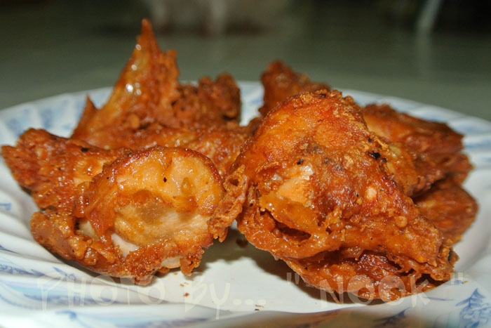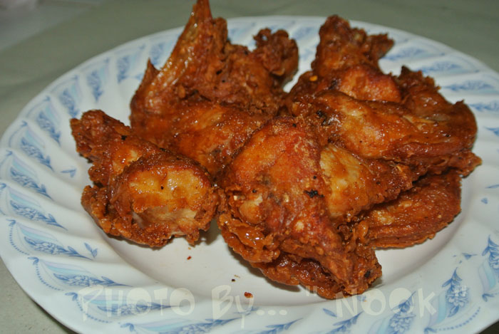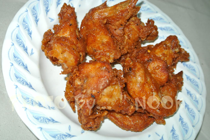 ช่วงนี้อยู่บ้าน เลยถือโอกาศตรวจสอบเครื่องเทศที่มีอยู่ ก็ไปเจอผงฮังเล (หรือ มาซารา) มีอยู่หลายซอง จัดการไปซื้อน่องไก่ นำมาหมักกับผงฮังเลพร้อมใส่กระเทียมสับ ขิงสับ นม และ แป้ง คลุกให้