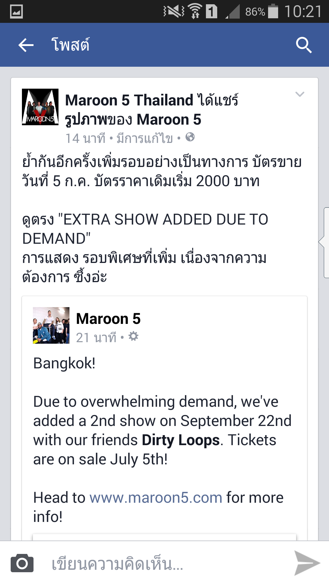 Maroon5 เพิ่มรอบคอนเสิร์ตแล้วค่ะ!!!