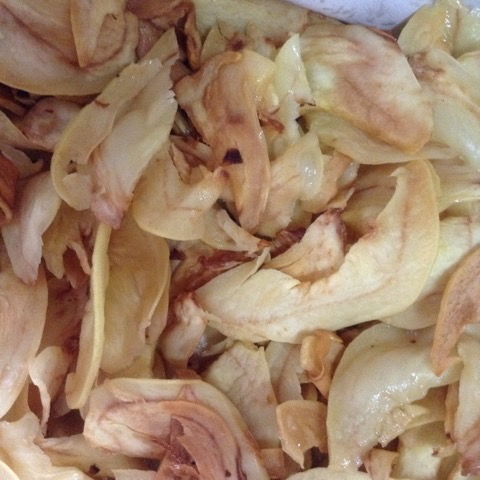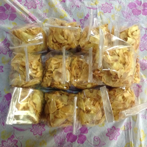 4.เตรีมน้ำมัน นำทุเรียนลงทอดใช้ไฟกลาง พอทุเรียนเริ่มเหลือง ยกขึ้น สะเด็ดน้ำมัน