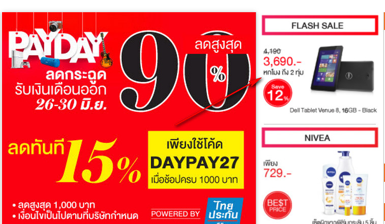 LAZADA ชื่อนี้มีปัญหา Dell Tablet Gen2 Venue 8 16GB 3,690 บ.แต่พอคลิ๊กกลายเป็น 4,790 บาท