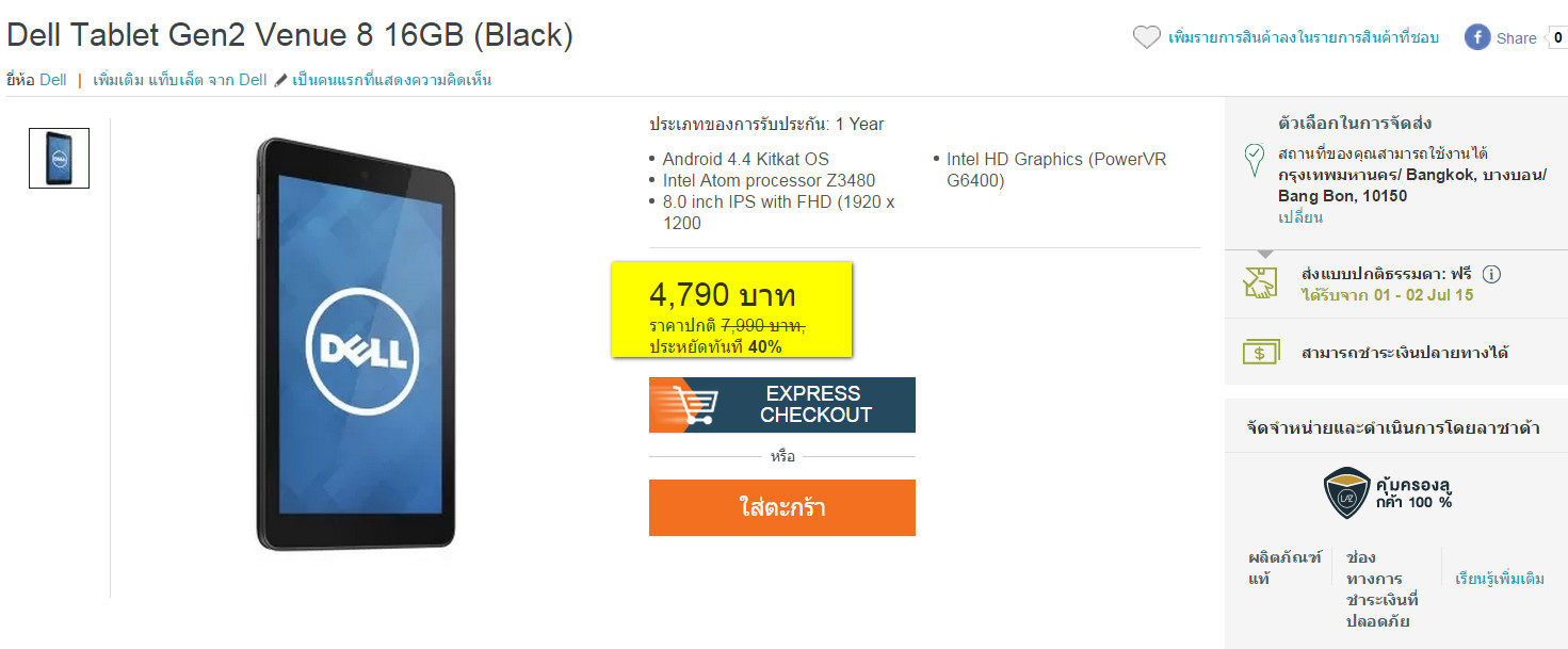 Dell Tablet Gen2 Venue 8 16GB 3690 บ.แต่พอคลิ๊กกลายเป็น 4,790 บาท