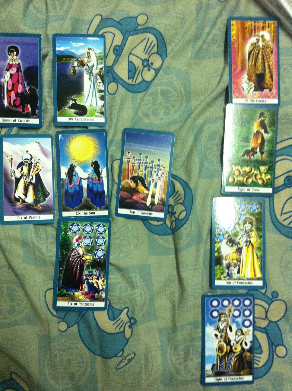 พอดีว่าเมื่อวันก่อนได้ไปคุยกับนักธุรกิจที่เก่งมากท่านหนึ่ง เขาบอกว่าเวลาเขาจะทำธุรกิจหรือตัดสินใจอะไรเขาจะใช้ไพ่ยิปซีหรือไพ่ทาโร่ดูก่อน เราได้ยินเลยสนใจไปซื้อมามั่ง