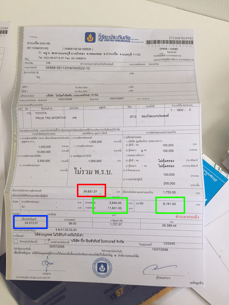 ตอนนี้ผมไปค้นกรมธรรม์มาแล้วครับเลยเอารูปมาลงให้ดูจะรบกวนช่วยดูให้หน่อยครับว่าส่วนลดที่ได้ถูกต้องหรือเปล่าครับ