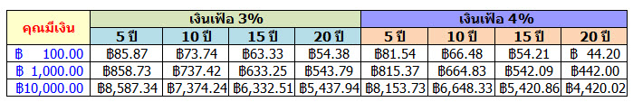 เหตุผลที่ไม่ควรเก็บเงินไว้เฉยๆ ... เงิน 100 บาท ปัจจุบันซื้อก๋วยเตี๋ยวได้ 2 ชาม อีก 15 ปี เหลือ 54 บาท ซื้อได้ชามเดียว