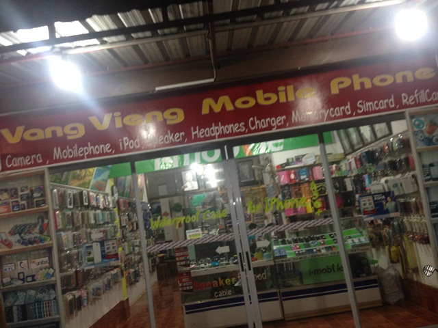 เดินไปเรื่อยนึกขึ้นได้ว่าต้องซื้อซิม เลยไปหาร้านขายซิม เดินหากันอยู่นาน สุดท้ายมาจอดร้านนี้ Vangvieng mobile phone เป็นร้านขายมือถือ แนะนำร้านนี้เพราะแม่ค้าเป็นกันเองมากกกก มาถึงปุ๊ปยังไม่ได้พูดจาทักทายเลย ก็เลอใส่หน้าแล้ว เสียงดังจนเรากับเพื่อนสะดุ้งเลย ฮ่าๆ ยัง ยัง ไม่พอ มาอีกสองก้อนในคอ ฮืมมมม กลิ่นแบบติดจมูก ฮ่าๆๆๆๆๆๆๆๆๆๆๆๆๆๆ