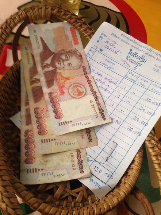 ผ่านไปซักพักถึงด่านของลาว ลงไปซื้อการ์ดผ่านทาง ราคาประมาณ45บาท เสียบบัตรเหมือนขึ้น BTS อะ จากนั้นก็ไปต่อได้เล๊ยยยย จุดนี้มีที่ให้แลกเงินนะ จะแลกที่นี่หรือที่วังเวียงก็ได้ ราคาไม่ต่างกันมาก 1บาท = 240 กีบ โดยประมาณ