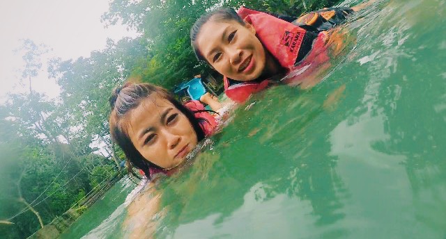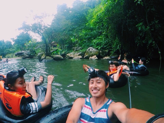 นั่งรถไม่นานก็ถึงจุดหมายปลายทางที่เราจะไปนั่งห่วงยางล่องไปในถ้ำละ