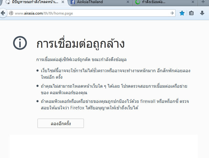 จริงๆ ผมก็เจอปัญหาอีกอย่างคือ ผมเข้าเว็บ AirAsia ไม่ได้ (ผมทำอาชีพทัวร์ ก็ต้องเข้าใช้บ่อยๆ) แม้จะใช้ Proxy ของ True ช่วยหรือไม่ก็ตาม ก็จะโหลดนาน และสุดท้ายก็เป็นอย่างในภาพ