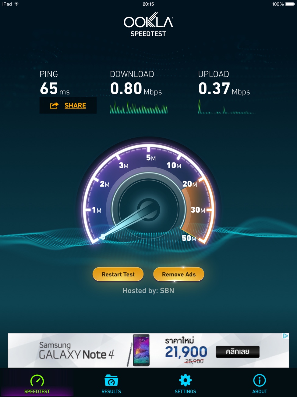 ผมได้ติดตั้ง 3bb 50m/10m ไว้ เพิ่งได้เราท์เตอร์มาวันที่ 20/4/59 เป็นของ Huawei ปัญหาคือ ผมเช็คความเร็วจาก Notebook Dell โดยเสียบสายแลนเช็คได้ DL 50 - 55 เมก UL 10 เมก มาเต็มตลอดไม่มีขาด แต่พอเอาสายแลน