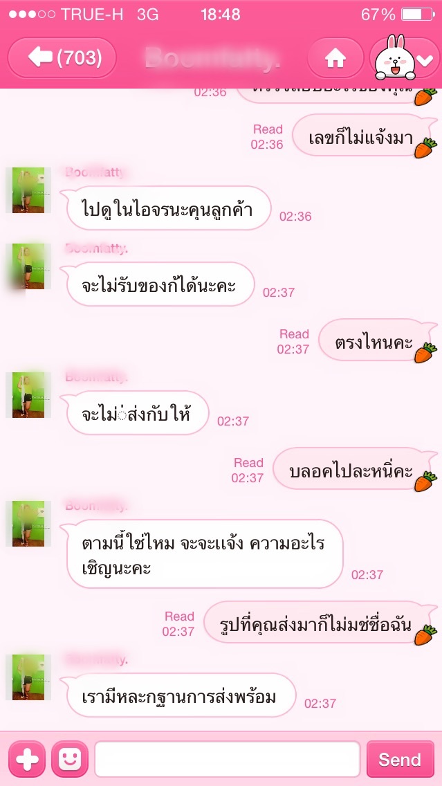 อย่างที่เห็นนะคะ พูดจาไม่รู้เรื่อง ส่งเลขพัสดุใครมาก็ไม่รู้ ท้าให้แจ้งความ คืออะไรคะงง สั่งของวันที่23โอน24 วันนี้!วันที่!29!ของยังไม่ถึง เงินก็ไม่โอนคืน บล็อคig. ไม่ตอบไลน์ โทรไปปิดเครื่องบ้าง ไม่รับบ้าง ตัดสายบ้าง. อยากถามความเห็นทุกคนค่ะว่าควรจะทำยังไงกับคนสันดานแบบนี้ดีคะ และก็ฝากเรื่องนี้เป็นอุทาหรณ์ ขนาดร้านที่มีฟอลโล่มากขนาดนี้ยังขาดความเป็นมืออาชีพและมีนิสัยที่น่าขยะแขยงขนาดนี้ ขอให้ทุกคนโชคดีในการช้อปปิ้งออนไลน์ยะคะ ส่วนฉันจะเก็บเรื่องนี้เป็นบทเรียน และต้องได้เงินคืนมา และไม่อยากให้มีแม่ค้าแย่ๆแบบนี้ค่ะ. ที่เราเบลอชื่อและหน้าเค้าไว้ เพราะไม่แน่ใจว่าควรเอารูปจริงๆลงไปเลยรึเปล่า ใครมีความคิดเห็นยังไง. เต็มที่ค่ะ. อ่อ ยืมไอดีเพื่อนมานะคะ ไม่ใช่ของตัวเองค่า