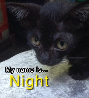 น้องชื่อ "ไนท์" ตัวเมีย อายุ 1 เดือน สีดำ มีขาวตรงหน้าอก ดวงตาแจ่มใส เป็นมิตรมาก