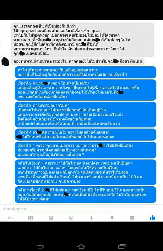 เมื่อเห็นข้อความ เราก็รีบตอบกลับทันที (เราไม่ค่อยตกใจกับข้อความที่เห็นเท่าไหร่ เพราะเค้ามักจะส่งมาแบบนี้อยู่บ่อยครั้งที่ทะเลาะกัน)